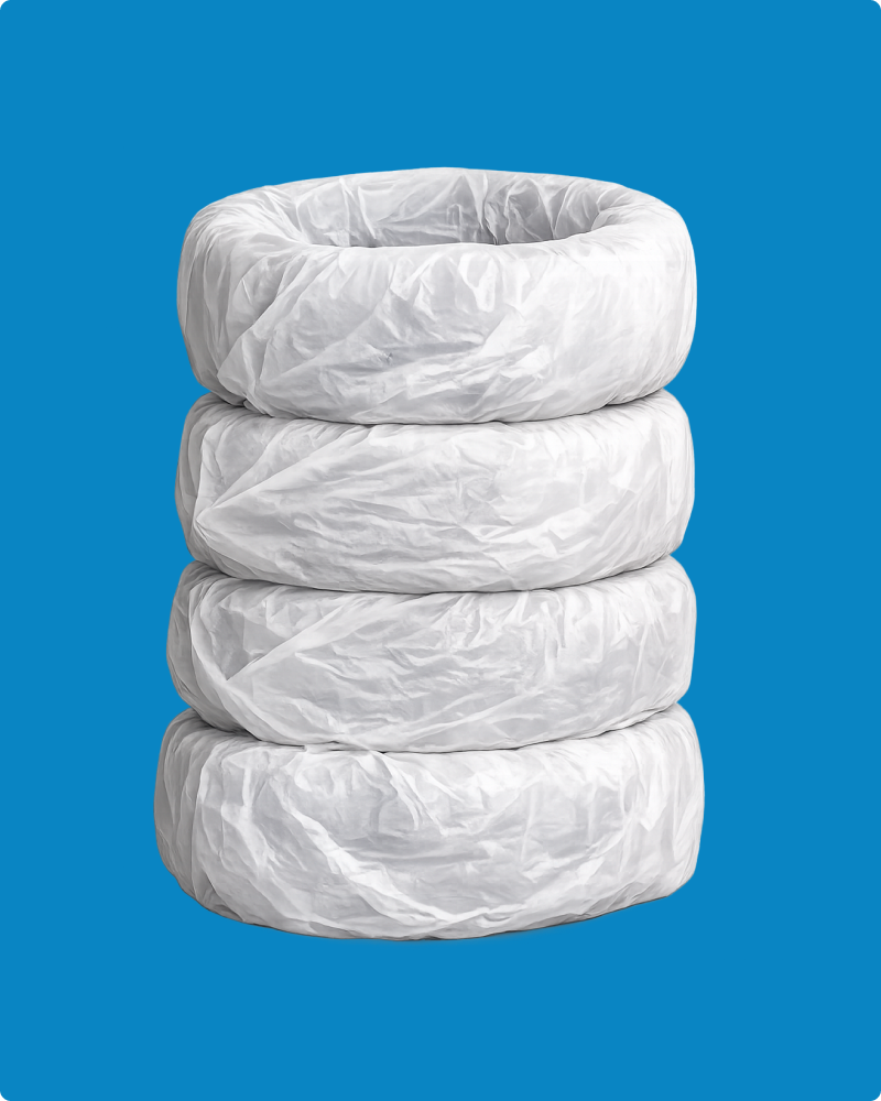 Чехлы для колес из материала ПНД (полиэтилен низкого давления) обладают высокой прочностью на разрыв и долговечностью