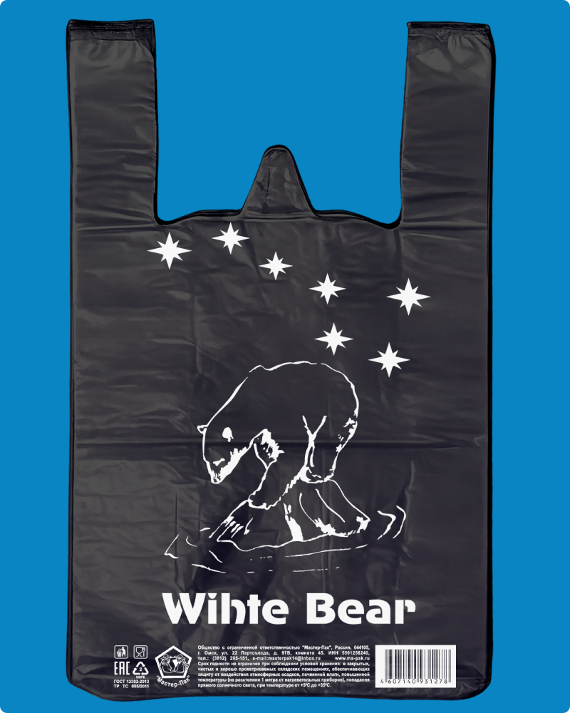 | Пакет-майка с рисунком Медведица из материала ПНД (полиэтилен низкого давления) имеет повышенную грузоподъемность, характерно шуршит при смятии. Увеличение внутреннего объема пакета происходит за счет фальцев. Петля позволяет удобно размещать пакеты-майки в кассовой зоне. Используется для упаковки пищевых и непищевых продуктов в супермаркетах, торговых точках прилавочного типа и точках общественного питания |