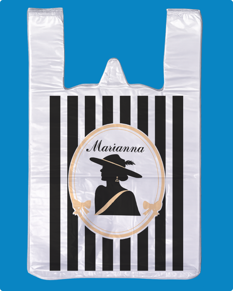 | Пакет-майка с рисунком Марианна из материала ПНД (полиэтилен низкого давления) имеет повышенную грузоподъемность, характерно шуршит при смятии. Увеличение внутреннего объема пакета происходит за счет фальцев. Петля позволяет удобно размещать пакеты-майки в кассовой зоне. Используется для упаковки пищевых и непищевых продуктов в супермаркетах, торговых точках прилавочного типа и точках общественного питания |