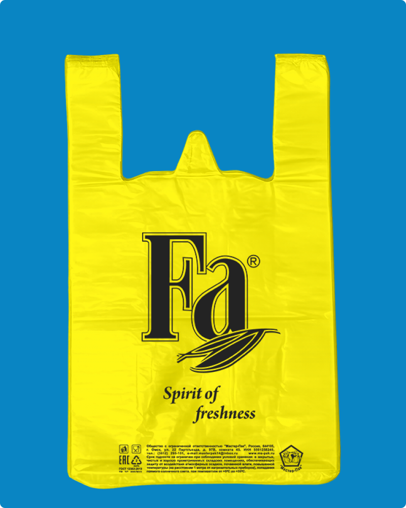 | Пакет-майка с рисунком Фа 30х55 20 мкм из материала ПНД (полиэтилен низкого давления) имеет повышенную грузоподъемность, характерно шуршит при смятии. Увеличение внутреннего объема пакета происходит за счет фальцев. Петля позволяет удобно размещать пакеты-майки в кассовой зоне. Используется для упаковки пищевых и непищевых продуктов в супермаркетах, торговых точках прилавочного типа и точках общественного питания |
