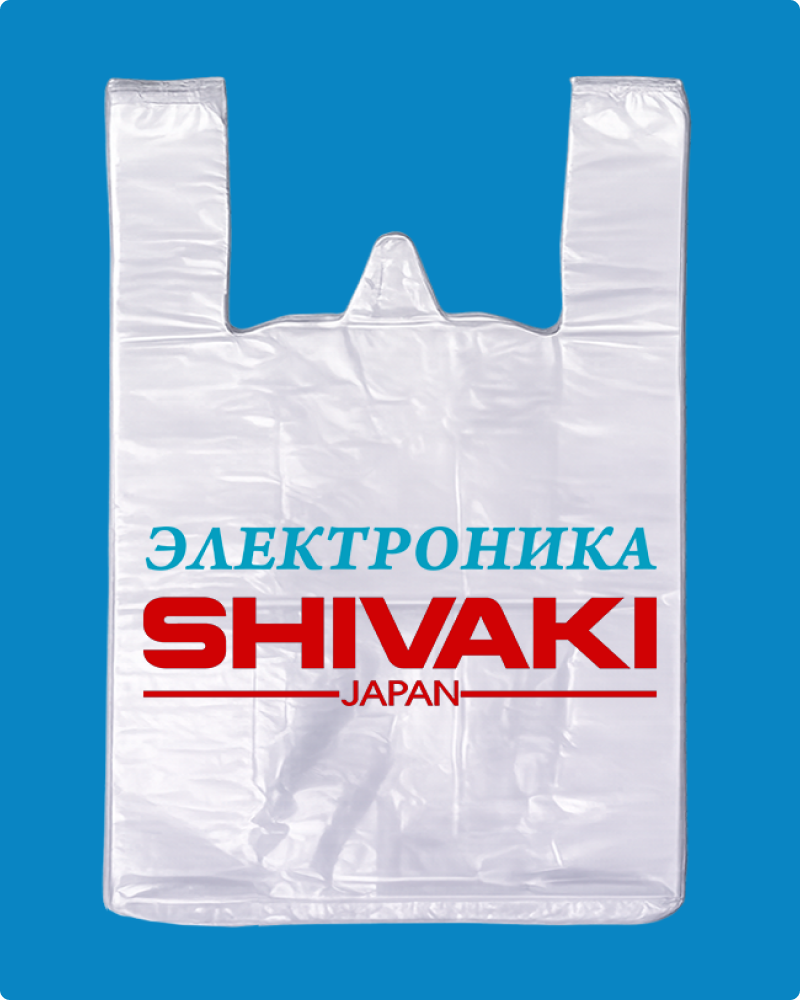 | Пакет-майка Shivaki из материала ПНД (полиэтилен низкого давления) имеет повышенную грузоподъемность, характерно шуршит при смятии. Увеличение внутреннего объема пакета происходит за счет фальцев. Петля позволяет удобно размещать пакеты-майки в кассовой зоне. Используется для упаковки пищевых и непищевых продуктов в супермаркетах, торговых точках прилавочного типа и точках общественного питания. |