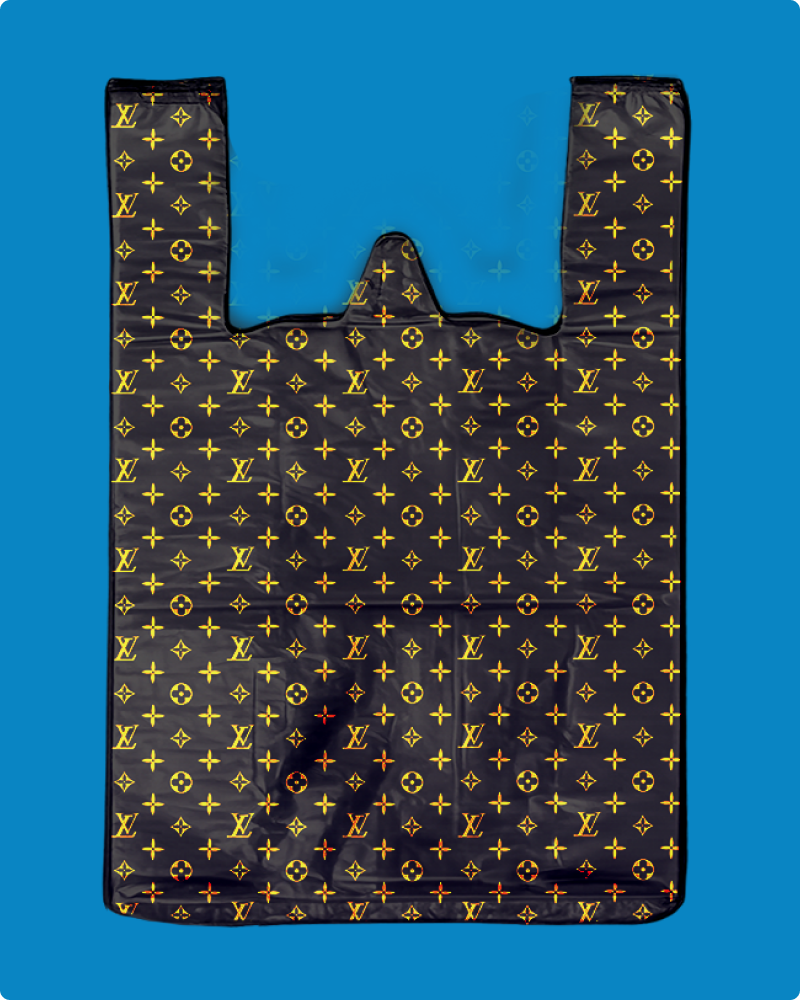 | Пакет-майка Louis Vuitton из материала ПНД (полиэтилен низкого давления) имеет повышенную грузоподъемность, характерно шуршит при смятии. Увеличение внутреннего объема пакета происходит за счет фальцев. Петля позволяет удобно размещать пакеты-майки в кассовой зоне. Используется для упаковки пищевых и непищевых продуктов в супермаркетах, торговых точках прилавочного типа и точках общественного питания. |